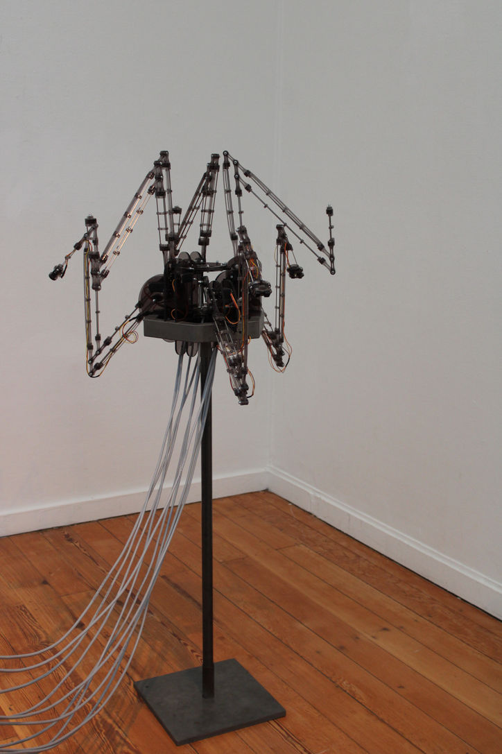 I called the final two robots: Beautiful Calamity and Aggressive Calamity. The first was created to reflect the essential instinct of life. Her motions were made to look like breathing. When approached she will abruptly stop and freeze until she is left alone again.